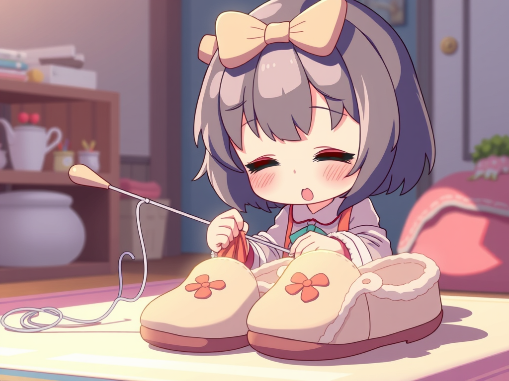“Look out! I am coming with a suite!” said the darning needle, and dragged a long thread after it; but there was no knot in the thread. The fingers directed the needle straight towards the cook’s slipper. The upper leather was torn and had to be mended.